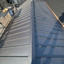 新しい屋根材には、ガルバリウム鋼板を使用して立平葺きとしました。